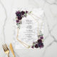 Dieses moderne und trendige Hochzeitsmenü umfasst ein geometrisches Imitat mit goldfarbenem Eukalyptusgrün und lila Blumenarrangements aus Pflaume, die auf einem Imitat mit weißem Marmor geschmückt sind. Alle Überschriften sind in lila Farben gehalten. Kontaktieren Sie Designer für passende Produkte und Designvarianten. Copyright Elegant lädt ein. Alle Rechte vorbehalten.