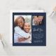 Diese minimale blau-weiße Karte hat Platzhalter für zwei Bildgrößen, um Ihren Gästen zu danken. Auf der Kartenrückseite befindet sich eine Wildblume mit Blumen und Platz für Ihre handgeschriebene Nachricht. Es kann für jede Gelegenheit oder Feier verwendet werden, um Ihre Wertschätzung zu zeigen