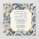 Eine Hochzeitseinladung mit einem blauen und cremefarbenen Damast-Design.