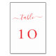 Weiß dekoriert. Roter Text. Personalisieren Sie Ihre Tischnummern und fügen Sie sie hinzu. Fügen Sie Ihre Nummern eins nach dem anderen hinzu.