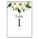 Tischnummer. Aquarell Weiße Blüten & Foliage.