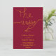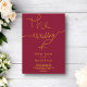 Diese elegante bordeauxrote und goldene Hochzeitseinladung eignet sich perfekt für eine moderne Hochzeit, das schlichte Design zeichnet sich durch elegante Goldkalligraphie auf bordeauxrotem Hintergrund aus.