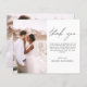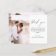 Budget Hochzeit Dankeschön Karten, die ein Foto auf der Vorder- und Rückseite haben. Die Dankeschön-Karten enthalten eine moderne, handgeschriebene, kursive Schriftzeichen-Typografie, die elegant, einfach und modern nach Ihrer Hochzeitsfeier zu benutzen sind.
