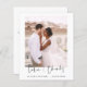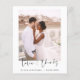 Budget Hochzeit Dankeschön Karten, die ein Foto auf der Vorder- und Rückseite haben. Die Dankeschön-Karten enthalten eine moderne, handgeschriebene, kursive Schriftzeichen-Typografie, die elegant, einfach und modern nach Ihrer Hochzeitsfeier zu benutzen sind.