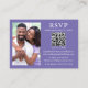 Moderne Minimalistische Einfache Hochzeitskarte mit QR Code. Ein paar Fotos vorne. Lavendelblau