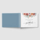Möglichkeit, jedes Ereignis hinzuzufügen und Wirbelsäule und Rückenfarbe zu jedem anderen Ton, den Sie mögen, zu ändern. Elegantes Gästebuch für jeden Anlass mit handgeschriebenen Kalligrafiedetails und exquisit handgemalt Aquarell Blumenrahmen, der Ihren Namen umgibt. Blume und Blattwerk in Rosa, staubige Rose, Elfenbein, Pfirsich, trübes Schieferblau, Grau und Salbei. Romantischer und eleganter Schiefer/trüber staubiger blauer Hintergrund. Teil unserer Hochzeitskollektion "Ethereal in Dusty Blue".