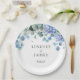 Diese Hochzeitsplatte ist mit einem romantischen, blauen Hydrangea Aquarelldruck ausgestellt. Wir bieten auch eine passende Papierserviette an. Passen Sie dieses Element an, und ändern Sie den Beispieltext mit dieser Vorlage in Ihren Text. Lizenziertes Bild