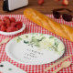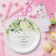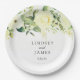 Die Hochzeitspapiertafel wird mit einem hübschen, weißen Rosenblumenprint gezeigt. Passen Sie dieses Element an, und ändern Sie den Beispieltext in Ihren Text. Suchen Sie nach unseren passenden Papierservietten. Lizenzierte Printwerbung