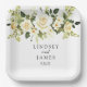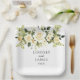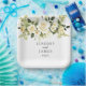 Die Hochzeitspapiertafel wird mit einem hübschen, weißen Rosenblumenprint gezeigt. Passen Sie dieses Element an, und ändern Sie den Beispieltext in Ihren Text. Suchen Sie nach unseren passenden Papierservietten und Papierbechern. Lizenzierte Printwerbung