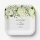 Die Hochzeitspapiertafel wird mit einem hübschen, weißen Rosenblumenprint gezeigt. Passen Sie dieses Element an, und ändern Sie den Beispieltext in Ihren Text. Suchen Sie nach unseren passenden Papierservietten. Lizenzierte Printwerbung