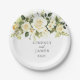 Die Hochzeitspapiertafel wird mit einem hübschen, weißen Rosenblumenprint gezeigt. Passen Sie dieses Element an, und ändern Sie den Beispieltext in Ihren Text. Suchen Sie nach unseren passenden Papierservietten und Papierbechern. Lizenzierte Printwerbung