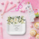 Die Hochzeitspapiertafel wird mit einem hübschen, weißen Rosenblumenprint gezeigt. Passen Sie dieses Element an, und ändern Sie den Beispieltext in Ihren Text. Suchen Sie nach unseren passenden Papierservietten und Papierbechern. Lizenzierte Printwerbung