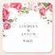 Der Hochzeitspapier-Untersetzer wird mit einem hübschen rosa rosa Blumendruck gezeigt. Passen Sie dieses Element an, und ändern Sie den Beispieltext in Ihren Text. Suchen Sie nach unseren passenden Papierservietten und Tellern. Lizenzierte Printwerbung