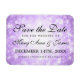 Elegante Winterhochzeit / Silvester "Save the Date" Design mit Lila Winter Wonderland (Schneeflocken + Glitzern), und individuelle Namen und Datum Text.