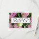 Hochzeitsrabatt in elegantem schwarzen Skript in geometrischem weiß-silberfarbenem Rechteck geschrieben. Weich rosa Rosen im Hintergrund, Die Rückseite in goldener Farbe und die schwarze Typografie vor knusprigem weißem Hintergrund personalisieren. Original Fotografie und Design von TamiraZDesign.