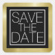 Schwarzes Quadrat mit goldenem Imitat und SAVE THE DATE in einem schmalen und eleganten Schriftart-Stil