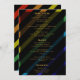 Präsentieren Sie Ihr Hochzeitsmenü mit Eleganz mithilfe dieser schwulen Hochzeitsmenükarte. Fette diagonale Regenbogenstreifen auf schwarzem Hintergrund mit luxuriöser Goldtypografie präsentieren Ihre Menügänge schön im Format 5x7". Vollständig anpassbar mit Appetizern, Hauptgerichten, Desserts, Getränken und Hinweisen zu besonderen Ernährungsbedürfnissen. Das hohe, elegante Design steht schön an jedem Gedecke oder wird perfekt auf den Empfangstischen präsentiert. Koordiniert nahtlos mit unserer kompletten Gay Men Hochzeit-Kollektion. Ideal für zeitgenössische LGBTQ-Feiern, die nach geschliffener, personalisierter Hochzeitspapeterie suchen, die Ihr Diniererlebnis verbessert.