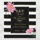 Labels für Hochzeitsschaumwein oder Hochzeitswein, diese moderne und schicke Vintage Romantik mit schwarzen Streifen in Gold, Goldtext und hübschen, hellrosa Maden, die die fetten Streifen betonen.