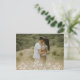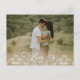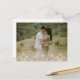 Hochzeit speichern Sie das Datum Foto weiße Skript Postkarte. Eine elegante moderne Kalligrafie, einfach Typografie-Design mit Foto-Platzierung. Dieses Design bietet Hochzeit speichern das Datum, mit Foto Platzierung, und eine einfache moderne Bürste Skript-Liebe Kalligraphie, Paar Foto-Kamera, moderne Einladungen, rustikale Landhochzeiten, einfache, einfache Verlobung, verlobtes Paar, Kalligraphie