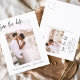 Hochzeit Speichern Sie die Datumskarten, die ein Foto auf der Vorder- und Rückseite haben. Die Save the Date-Karten enthalten eine moderne, handgeschriebene, kursive Schriftzeichen-Typografie, die elegant, einfach und modern nach einem einfachen Hochzeitstag-Fest zu verwenden sind.