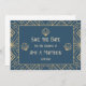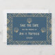 Art-Déco-Stil Hochzeit speichern Sie die Dattelkarte mit marineblau Hintergrund und goldene geometrische Motive