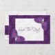 Save the Date Karte aus der lila Linie der Butterfly Brocade Collection für Hochzeiten. Vier weitere Juwelierfarben stehen zur Verfügung: Pfau, Garnet, Kupfer und ein schönes Farngrün. Der Hintergrund ist ein aufwändiges Brokat-Design, es wird nicht erhöht, es wird flach gedruckt. Die Schmetterlinge haben das Aussehen eines Buntglases und werden wie weise nicht aufgezogen. Sowohl die Farbe als auch der weiße Bereich für Text befinden sich im Brokatmuster. Ebenfalls erhältlich sind Artikel wie Porto, Tischnummern, Tischkarten, Dankkarten, UAWG, Empfang, Speichern der Datumskarten sowie andere passende Produkte.