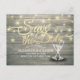 Save the Date Einladung Postkarten Vorlagen - Elegantes Schreiben, Vintage Champagnerbrille und String Lights auf rustikalem Holzhintergrund. Ein perfektes Design für Ihren großen Tag! Alle Textstile, Farben, Größen können an Ihre Bedürfnisse angepasst werden.