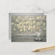 Save the Date Einladung Postkarten Vorlagen - Elegantes Schreiben, Vintage Champagnerbrille und String Lights auf rustikalem Holzhintergrund. Ein perfektes Design für Ihren großen Tag! Alle Textstile, Farben, Größen können an Ihre Bedürfnisse angepasst werden.