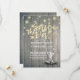 Save the Date Einladungskarten-Vorlagen Hochzeit - Elegantes Schriftzeichen, Vintage Champagnerbrille und Streichellichter auf rustikalem Holzhintergrund. Ein perfektes Design für Ihren großen Tag! Alle Textstile, Farben, Größen können an Ihre Bedürfnisse angepasst werden.