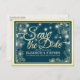 Hochzeit speichern Sie das Datum Chic Blue Gold Bl Ankündigungspostkarte