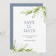 Diese Hochzeit speichern das Datum Einladungen mit einem oberen und unteren Rand der Aquarell-Grün. Die Wörter "Save the Date" sind cool grau. Die Karte kehrt zu einer entsprechenden Farbe zurück. Um das komplette Hochzeitthema zu sehen, besuchen Sie www.zazzle.com/dotellabelle Original Aquarellkunst und Design von Victoria Grigaliunas. Für eine maßgeschneiderte schauen Sie mir eine Nachricht für mehr Infos.