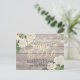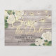 Save the Date Hochzeitseinladung Postcard Vorlagen - elegante weiße, hübsche Hydrangea-Blume und Streichleuchten auf rustikalem Holzhintergrund. Ein perfektes Design für Ihren großen Tag! Alle Textstile, Farben, Größen können an Ihre Bedürfnisse angepasst werden.