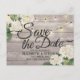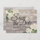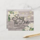 Save the Date Hochzeitseinladung Postcard Vorlagen - elegante weiße, hübsche Hydrangea-Blume und Streichleuchten auf rustikalem Holzhintergrund. Ein perfektes Design für Ihren großen Tag! Alle Textstile, Farben, Größen können an Ihre Bedürfnisse angepasst werden.