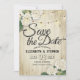 Save the Date Einladungskarten-Vorlagen Hochzeit - Elegantes Drehbuch mit Weiß-Hydrangeas-Blumenleuchten und Streichelleuchten auf rustikalem Weiß-Holz-Hintergrund. Ein perfektes Design für Ihren großen Tag! Alle Textstile, Farben, Größen können an Ihre Bedürfnisse angepasst werden.