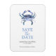 Diese benutzerdefinierten speichern Sie die Datummagnete mit einer Wasserfarbenkrabbe in Blautönen. Die Wörter "Save the Date" werden in einem Kompliment eingegeben. Geben Sie Ihre personalisierten Informationen mithilfe der Vorlagenfelder ein. Eine reizvolle Wahl für Hochzeiten in Urlaubsort am Strand. Um mehr von diesem Hochzeitthema zu sehen, besuchen Sie www.zazzle.com/dotellabelle Einzigartige Aquarellkunst und Design von Victoria Grigaliunas of Do Tell A Belle. Für eine maßgeschneiderte schauen Sie mich nach Informationen.