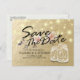 Hochzeit Sichern Sie das Datum Postkarte Vorlagen - Elegante florale Save the Date Schreiben Skript und Vintage Mason Jar String Lights auf Imitate Gold Foil Hintergrund. Ein perfektes Design für Ihren großen Tag. Alle Textstile, Farben, Größen können an Ihre Bedürfnisse angepasst werden!