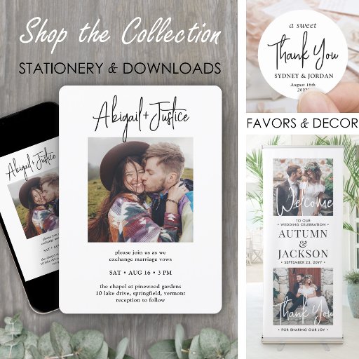 Erzählen Sie die fröhliche Neuigkeit Ihrer Verlobung und bevorstehende Hochzeit mit einzigartigem Foto Save the Date Weihnachtsschmuckkarten. Das Bild, der skalierbare QR-Code und alle Formulierungen auf dieser Vorlage sind einfach zu personalisieren, inklusive Skripten, die in "Unser Datum Gerettet" geändert werden können. Freunde und Familie werden im Rahmen ihrer Feriendekoration Lieben mit hängenden Papierschmuck-Einladungen machen. (IMAGE PLACEMENT TIP: Eine einfache Möglichkeit, ein Foto genau so zu positionieren, wie Sie es gewollt haben, besteht darin, es einzuschneiden, bevor Sie es auf die Zazzle-Website hochladen.) Das Schwarz-Weiß-Design zeigt zwei Bilder des verlobten Ehepaares, überlagert mit trendiger, gebürsteter Schriftzeichen-Kalligraphie und moderner minimalistischer Typografie. Durch das Scannen des QR-Codes mit ihren Handys werden die Gäste direkt auf die Hochzeitswebsite geschickt, wo sie alle wichtigen Details sehen und sich online mit Ihnen verbinden können. Diese stilvolle Urlaubskarte ist eine elegante Ankündigung für Ihre bevorstehende Feier. Herzlichen Glückwunsch an die Braut und Bräutigam!