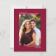 Diese magnetischen Speicherkarten zeichnen sich durch ein schlichtes, modernes minimalistisches Design aus. Ihr Foto ist von einem einfachen Text umgeben, der alle wichtigen Informationen auf einem wunderschönen, roten Hintergrund enthält. Eine wunderbare Art, Ihre Freunde und Familie über Ihre kommende Hochzeit lassen. Die Karte ist in vertikaler Ausrichtung für ein porträtorientiertes Foto konzipiert.