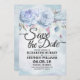 Save the Date Einladungs-Card-Vorlagen Hochzeit - Natürliche elegante blaue Wasserfarbe Bohemische Blume, Federn und handgeschriebenes Skript. Ein perfektes Design für Ihren großen Tag! Alle Textstile, Farben, Größen können an Ihre Bedürfnisse angepasst werden.