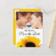 Hochzeit Speichern Sie die Date-Postkarte mit Sonnenblumen-Foto. Personalisieren Sie es mit Ihren Hochzeitsdetails und fügen Sie Ihr eigenes Foto ein. Sie können Textfarbe, Schriftart, Größe und Position leicht ändern, indem Sie auf die Schaltfläche Anpassen klicken.