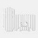 Weiß gestreift mit Punkten. Frauenkopf mit Schleier und Rosen im Haar.