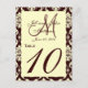 Braune Damastkarten Tischnummer. Entwurf des Layouts von Elke Clarke©. lizenzierte Grafiken. Machen Sie eine mit jeder Nummer und bestellen Sie eine von jeder Nummer.