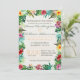 Erstellen Sie Ihre eigene Hochzeit| Tropische Blätter, Flora und Extravagante Ananas Einladung. Dieses wunderschöne Design mit lebhaften, farbenfrohen exotischen Blume in lila, türkisfarbenen, roten, rosa, gelben und orangefarbenen Farben hebt sich wunderbar von den tiefen, tropischen Monstera- und Palmenblättern ab. Der Rücken hat vertikale Streifen strukturiert und ein elegantes Zentrum von wunderschönen Blume mit einem stilvollen schwarzen und goldenen Kreis mit einem extravaganten Ananas in der Mitte. Diese meistverkaufte Typografie verleiht diesem vollständig personalisierbaren Design einen modernen, raffinierten Vorsprung. Passen Sie diese Vorlage an, um sie wirklich einzigartig zu machen. Machen Sie jetzt Ihre eigenen personalisierten Hochzeitseinladungen!