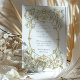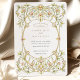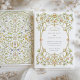 Diese elegante Hochzeitseinladung besticht durch einen aufwändigen goldenen Rahmen, der mit sanften Aquarellfloralen in Blau, Pfirsich, Salbei und Maisblume geschmückt ist. Inspiriert durch den klassischen Rokoko und die europäische botanische Kunst, umrundet der Rahmen anmutig den Einladungstext und erinnert an das Aussehen von antikem Schmiedeeisen, das in blühenden Weinreben eingezogen ist. Das hintere Design präsentiert eine detailreiche Radialkomposition mit wirbelnden Blumen, stilisierten Blätter und Schnörkeln, die ein symmetrisches Medaillon bilden. Die handbemalten Stoffe und die Pastellpalette verleihen dieser Suite einen luftigen, romantischen Charme. Ideal für feierliche Hochzeiten im Garten, Frühjahr- oder Sommerveranstaltungen oder für Paare, die eine Vintage Ästhetik suchen.
