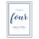 Hochzeit Vier einfache Blue & White Dinner Gast Tischnummer