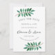 Watercolor Foliage Greenery Wedding speichern Sie die Dattelkarten mit schönen Blättermuster zurück und eine schöne Suite mit verschiedenen Blätterdetails auf jedem.