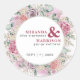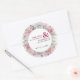 Hübsches Aquarelldesign von Rose umrahmt diesen hübschen Rundaufkleber, der Ihre Namen in feinem Schriftart hält - perfekt für Hochzeitsumschläge, Favoriten und vieles mehr.