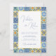 Mit unseren Einladungen zum Hochzeitsfest "Blue Mediterranean Tile" und "Citrus" bringen Sie Ihre Gäste zu den sonnenverwöhnten Küsten des Mittelmeers. Inspiriert durch die lebhaften Farben und Muster der Mittelmeerküste, sind diese Einladungen eine faszinierende Mischung aus Eleganz und Geschmack, perfekt für eine Hochzeit in Urlaubsort oder eine Feier mit mediterranem Charme. Die Einladungen zum Hochzeitsfeiern in der blauen Mittelmeerküste und der Citrus sind in einem atemberaubenden, kachelinspirierten Design in Blautönen gehalten, das die Ruhe des Mittelmeers anregt. Die komplizierten Muster strahlen ein Gefühl zeitloser Schönheit aus, während die lebhaften Zitrusakzente einen Ausbruch an Energie und Wärme erzeugen. Diese Einladungen dienen als eine wunderbare Vorschau auf Ihren Hochzeitstag und versprechen eine Feier voller Liebe, Lachen und den zauberhaften Aromen des Mittelmeers. Sie Set für eine fröhliche Ansammlung, in der Sie in der Romantik Ihrer Liebe erleben und sich in den Genuss mediterran inspirierter Köstlichkeiten stürzen können. Personalisierung ist der Schlüssel, und unsere Einladungen erlauben Ihnen, Ihre Namen, Hochzeitstag und eine herzliche Nachricht einzufügen. Diese individuelle Touch macht jede Einladung zu einem gepflegten Sake, der Ihre einzigartige Liebe widerspiegelt. Mit viel Liebe zum Detail gestaltet und auf hochwertigen Materialien bedruckt, verließ unsere Blue Mediterranean Tile and Citrus Wedding Invitations einen bleibenden Eindruck bei Ihren Gästen. Die Kombination aus Eleganz und mediterranem Geschmack schafft eine unvergessliche Einladung, die den Geist Ihres besonderen Tages einfängt. Erleben Sie die Schönheit des Mittelmeers und Set auf einer Reise der Liebe und Romantik mit unseren bezaubernden Einladungen. Lade deine Lieben ein, mit dir unter der mediterranen Sonne zu feiern, wo das Wesen der Liebe und das zarte Aroma des Zitrusfrüchte ein unvergessliches Hochzeitserlebnis schaffen.