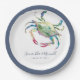 Diese nautischen Papier-Teller zeichnen sich durch eine atemberaubende Sandkrabbe Meeresleben Aquarell-Design, inspiriert durch die Schönheit des Ozeans. Eine blaue Krabbenillustrierung fügt eine romantische Touch mit Meeresfrüchten hinzu, die sich ideal für eine rustikale Strandhochzeit am Meer oder für ein Charleston lässiges Aquarium eignet. Personalisieren Sie mit Ihren Namen und Hochzeitsdatum für eine trendige Skizze Hochzeit in Urlaubsort. Ideal für Meeres-, Küsten- und Strandveranstaltungen. Entdecken Sie mehr Crabs Papier Teller unter www.zazzle.com/dotellabelle. Einzigartige Aquarellkunst und Design von Victoria Grigaliunas of Do Tell A Belle.