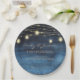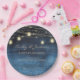 Teller zum Hochzeitsessen, Brautparty oder Probe-Dinner in elegantem Marineblau mit goldenen Glitzer, Saitenleuchten und Laternen. Personalisieren Sie die Namen des Paares, das Hochzeitsdatum und den Ort. Kontaktieren Sie uns für Hilfe bei der Anpassung oder der Anpassung von Produkten.